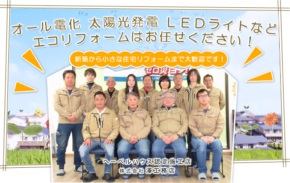 オール電化、太陽光発電、LEDライトなどエコリフォーム、住宅リフォームは澤工務店へ!!